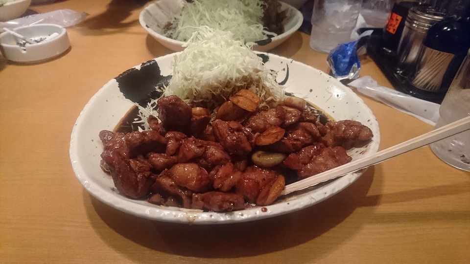 そんなブルーな状態でしたが腹は減っていたので店内に入りコマダブルを注文しました。細切れなので少し安いのですが味付けはトンテキと同じで量を稼げるので貧乏大食感の味方です(笑)