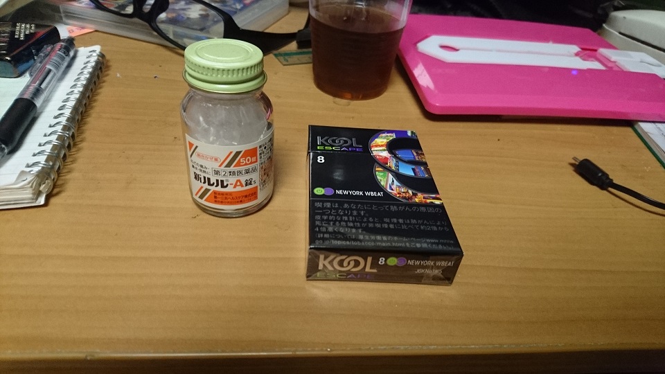 仕事帰りに薬局で買った「新ルルA錠」です。喉が痛かったのでタバコも適当なメンソールに変えました←辞めないしタールも下げない自分が怖い((+_+))