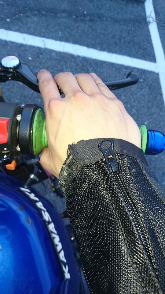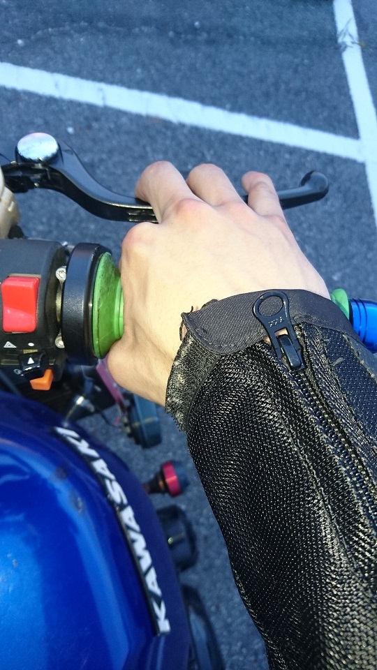 この握りはスロットル操作とブレーキング操作が両立でき使いやすく、kazzもその昔峠道で使用し今でも速く走りたいときには使っています。