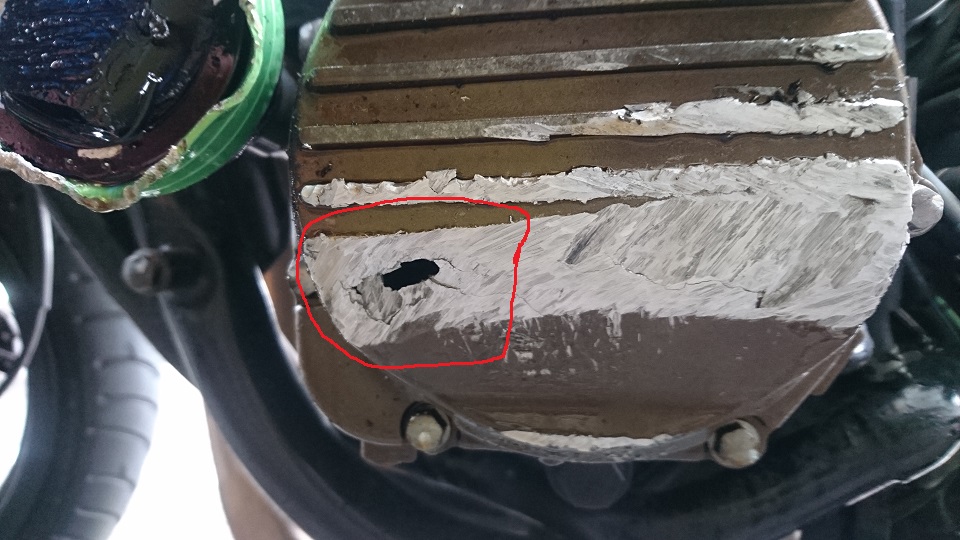 パルシングカバーに穴が空きオイルをブチ撒きました。