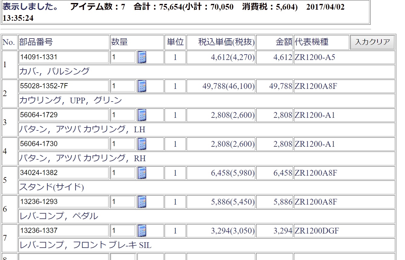 部品代だけで7万円を超えてますがこれに工賃とガスケットなどの小物が必要になります。