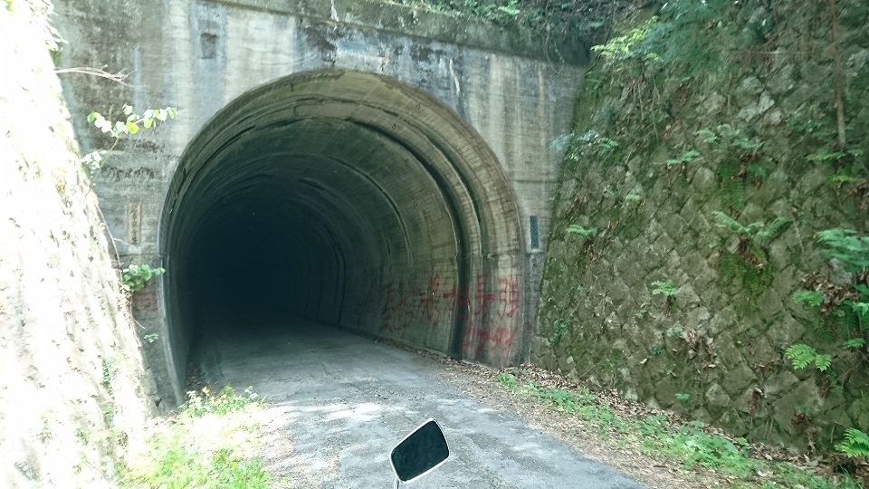 照明が一切無く途中でカーブしているので出口が見えず昼間でも真っ暗なトンネルです。